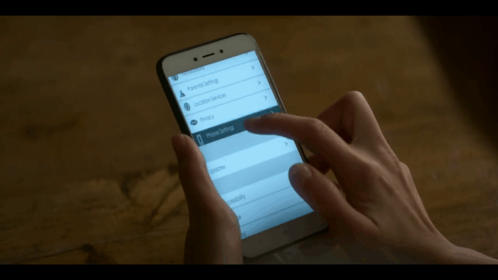 Here the person scrolls down the phone’s menu and selects phone settings