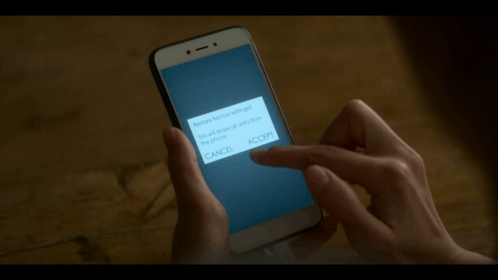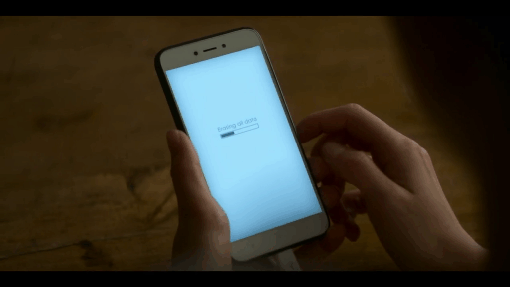 Once accept is pressed the phone displays a loading screen with “Erasing all data” shown on the screen